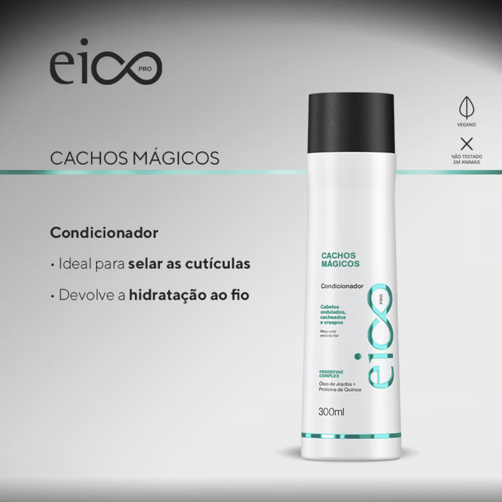 Kit Eico Pro Cachos Mágicos Sem Sal Shampoo e Condicionador 300ml Cacheados Crespos Ondulados
