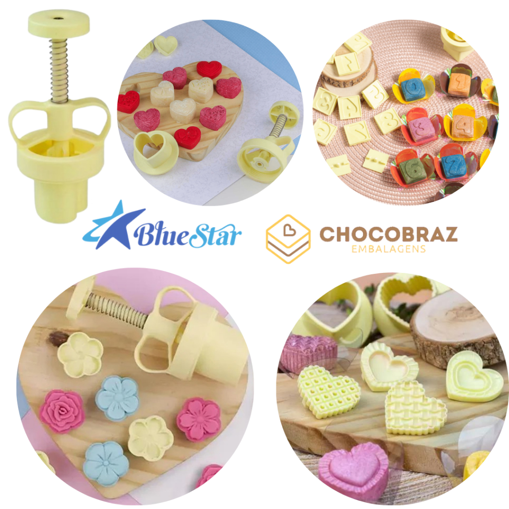 KIT EJETOR E MOLDE PARA MASSAS BRIGADEIRO E DOCES - BLUE STAR MAX FLORES. CORAÇÃO. ARABESCOS. DOCINHOS GOURMET - OFF////