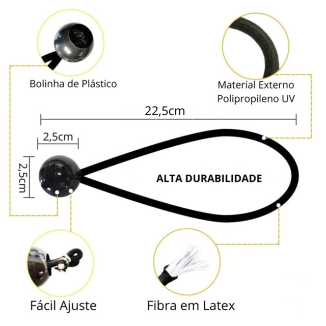 | Kit Elastico Preto Com Bolinha Multiuso (Elástico Piscina, Caminhão... este produto | R$ 17,90 | — | 4.9/5 | — |