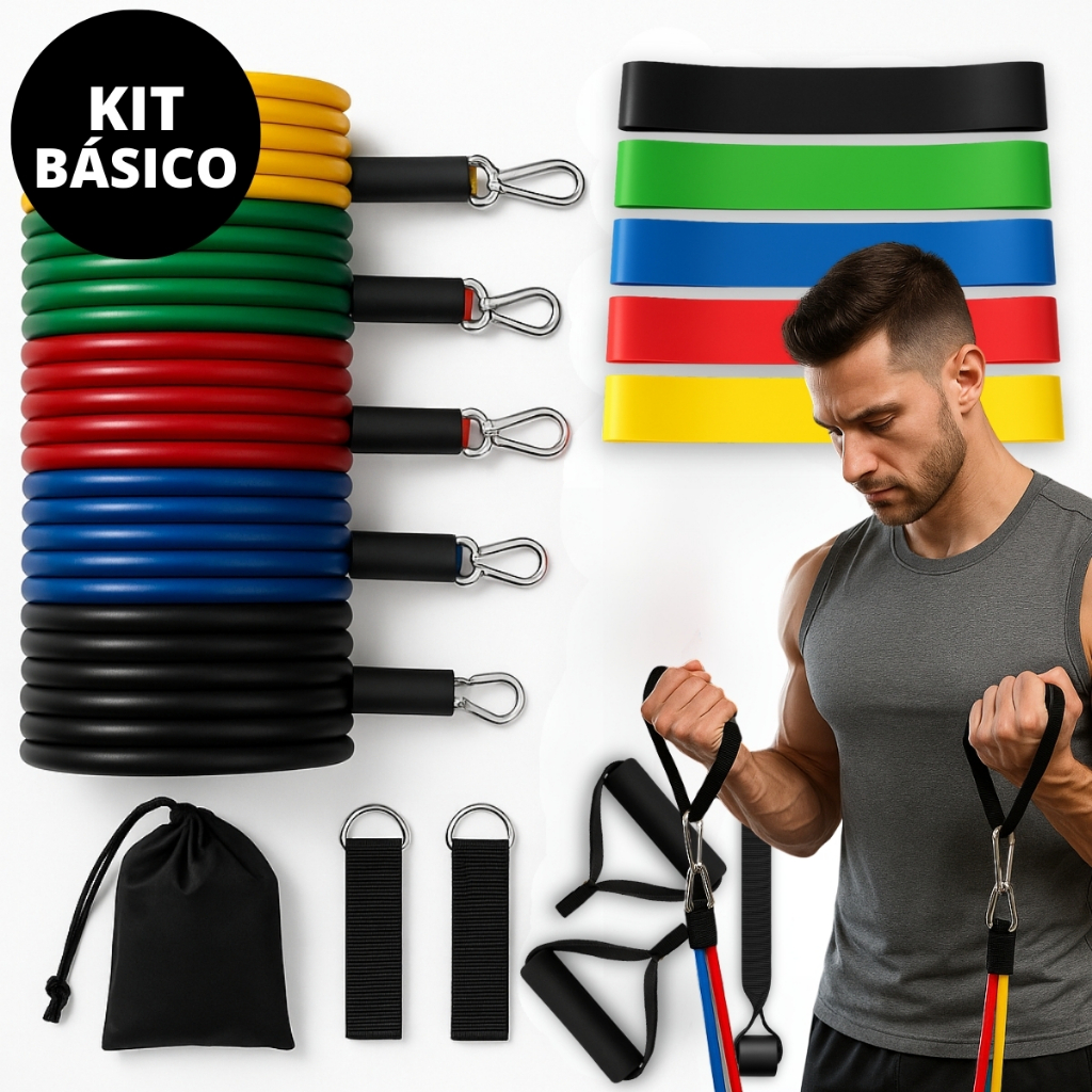 Kit Elásticos Extensores + 11 Miniband Faixas Elásticas Treinos Práticos Academia Crossfit Premium