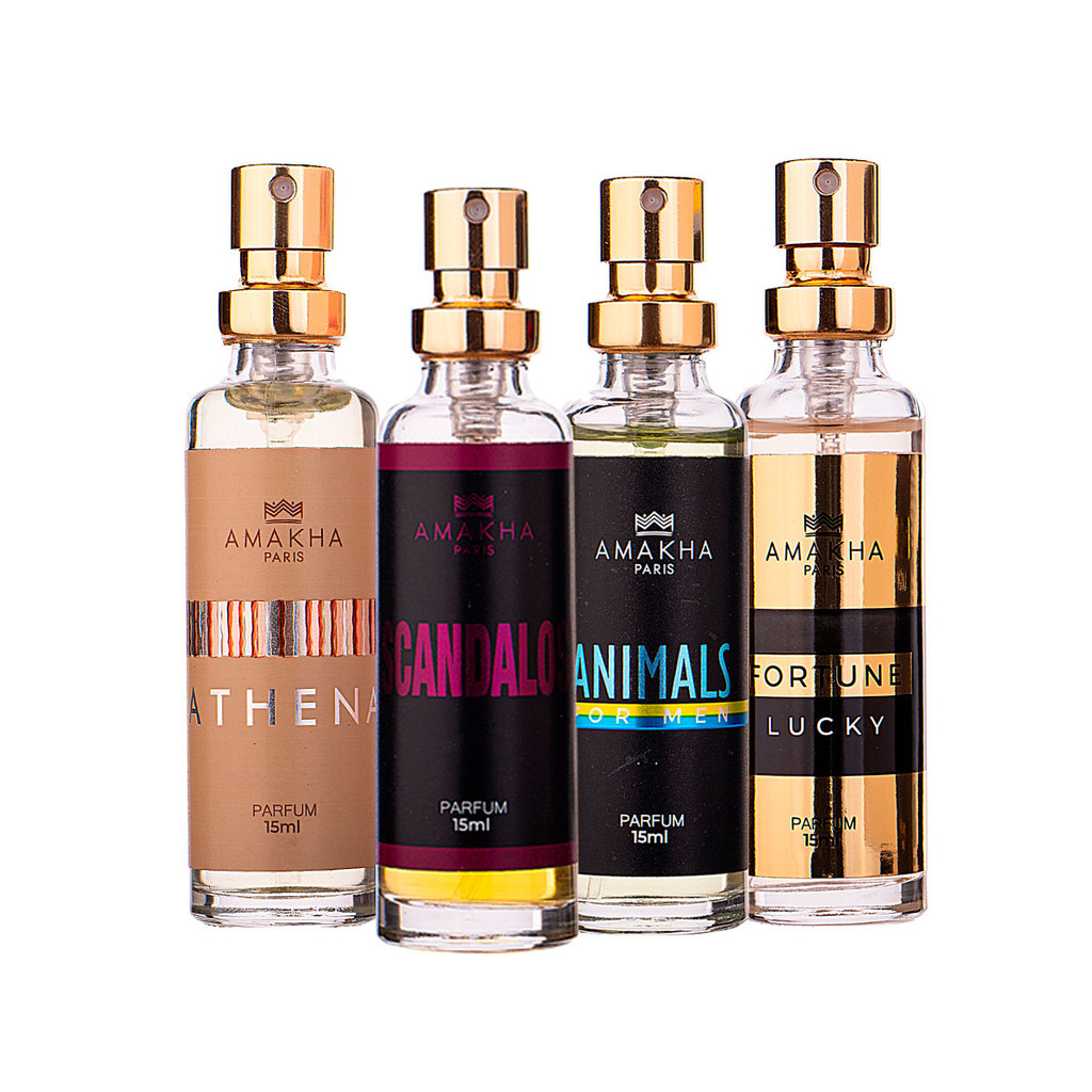 Kit Ele & Ela Noite: Athena + Escandalosa + Animals + Fortune Luck | Perfumaria 15ml Amakha Paris
