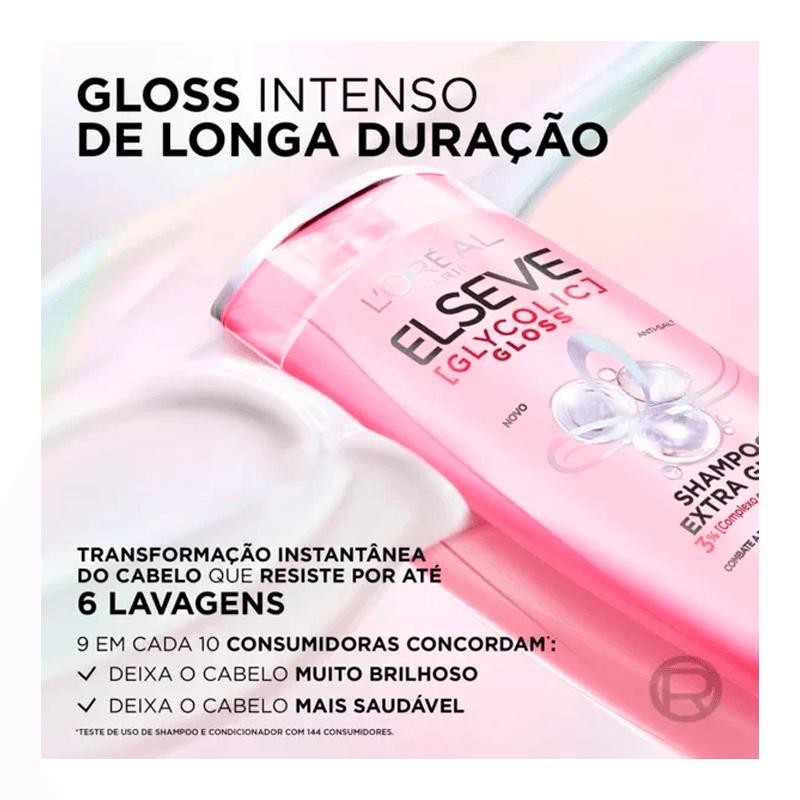A linha Elseve Glycolic Gloss de LOréal Paris garante 3X mais gloss que resiste a 6 lavagens. Sua fórmula com pH Ácido rica em Ácido Glicólico, combate a porosidade e sela as cutículas para um cabelo visivelmente saudável e alinhado para um brilho gloss.