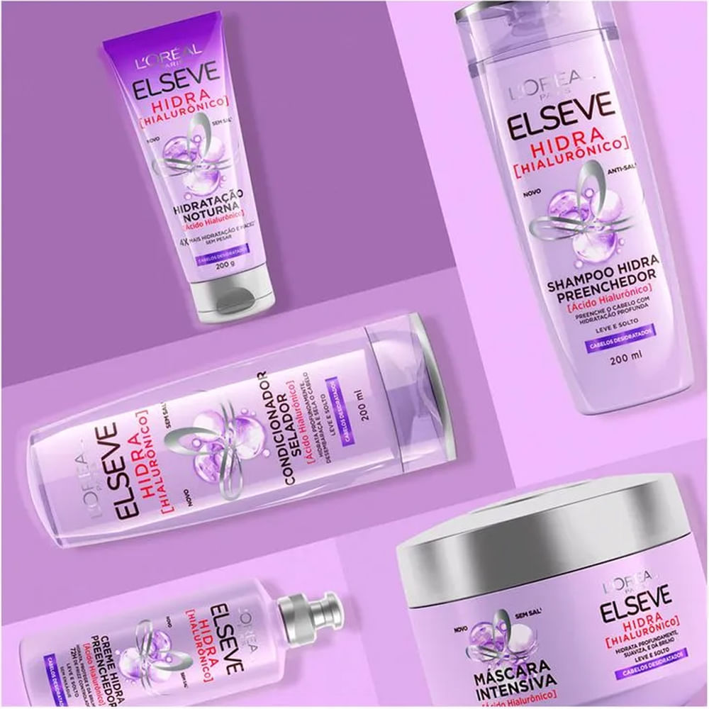 O Kit Elseve Kit Shampoo 375ml + Condicionador 170ml e Creme De Tratamento Hialurônico 300g é a solução ideal para cabelos desidratados, sem brilho e com aspecto opaco. Enriquecido com Ácido Hialurônico, poderoso ativo dermatológico conhecido por sua alta capacidade de retenção de água, este trio oferece hidratação profunda, leveza e preenchimento da fibra capilar, sem pesar os fios. Benefícios:Hidratação profunda e duradoura, sem pesar.Enriquecido com Ácido Hialurônico: preenche e retém a umidade nos fios.Cabelos até 10x mais hidratados desde a primeira aplicação.Brilho intenso, toque sedoso e aparência saudável.Reduz o ressecamento e a porosidade dos fios.Ideal para todos os tipos de cabelo, inclusive finos e oleosos. Como usar: Shampoo: Aplique nos cabelos molhados, massageando suavemente o couro cabeludo até formar espuma. Enxágue bem. Condicionador: Após o shampoo, aplique nos fios, evitando a raiz. Deixe agir por alguns minutos e enxágue. Creme de Tratamento: Use de 1 a 2 vezes por semana. Aplique no comprimento e pontas, deixe agir por 3 a 5 minutos e enxágue bem. Sobre a marca: Presente no mercado global há mais de 40 anos, Elseve, marca da L'Oréal Paris, é sinônimo de inovação em tratamento capilar. Seus produtos são desenvolvidos com tecnologia de ponta e ingredientes poderosos para oferecer soluções eficazes para todos os tipos de cabelo. Com linhas icônicas e resultados comprovados, Elseve combina ciência e beleza para revelar o melhor dos seus fios em cada aplicação.