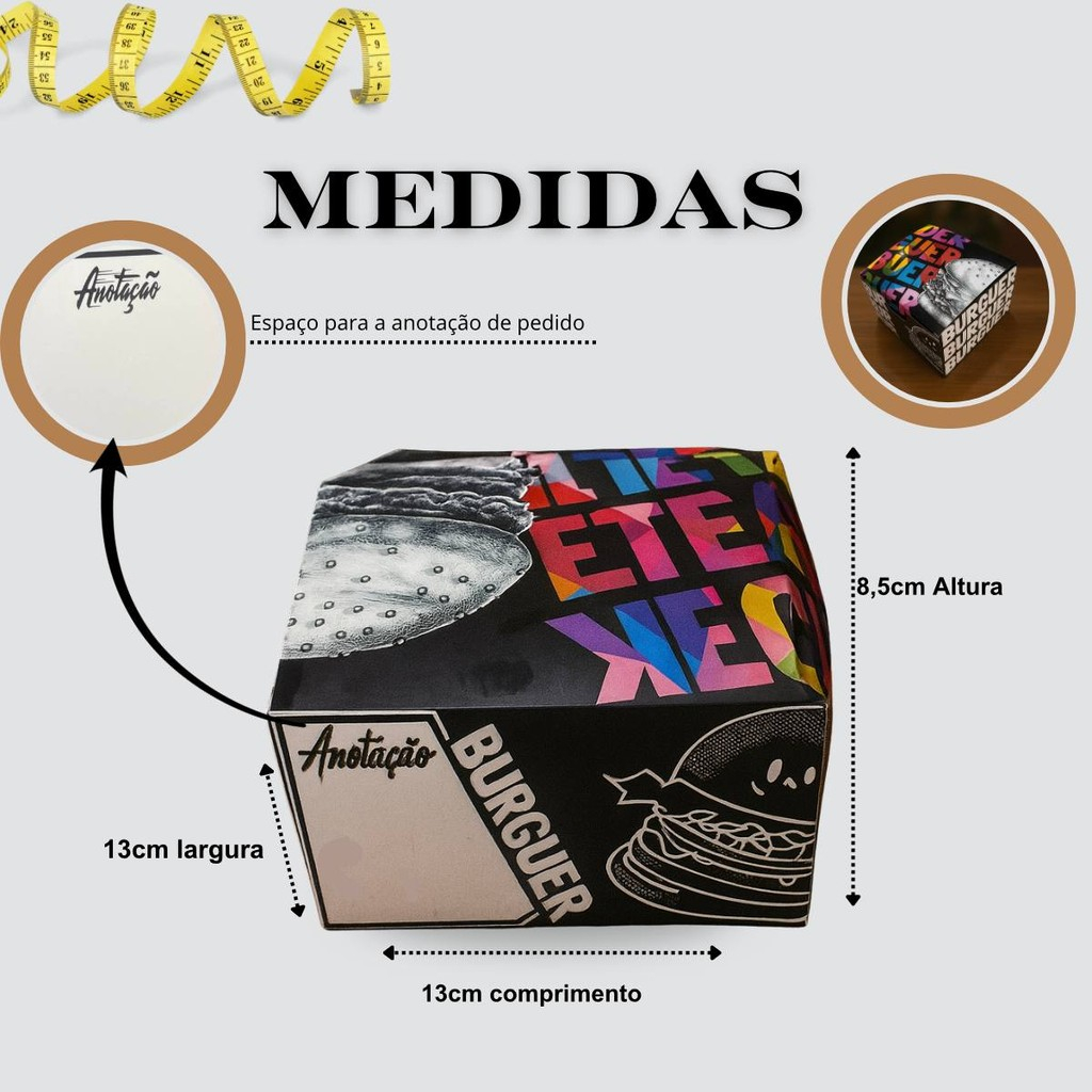 Kit com 50 ou 100 Caixas para Hamburguer + Batata Frita – Estampa Criativa e Montagem Fácil! ENVIO IMEDIATO Destaque sua apresentação com esse super kit de embalagens para batata frita + hamburguer! Produzidas em papel triplex 250g, as caixinhas possuem estampa moderna e colorida que valoriza seu produto e chama a atenção do cliente. Perfeitas para lanchonetes, food trucks, eventos e delivery. 📦 Características: Quantidades disponíveis: 50 unidades ou 100 unidades 50 UNIDADES DE BATATA + 50 UNIDADES DE HAMBURGUER 100 UNIDADES DE BATATA + 100 UNIDADES DE HAMBURGUER Material: Papel triplex 250g – firme e resistente Impressão colorida de alta qualidade Fácil montagem – enviadas desmontadas, prontas para dobrar Design moderno e atrativo que protege e valoriza o alimento ✅ Uso indicado: batata frita, petiscos, aperitivos, snacks e combos criativos. 🍟✨