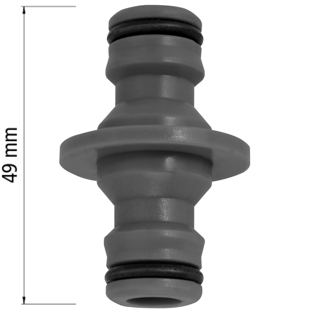 - Para irrigar áreas maiores, conte com o conector para 2 engates rápidos Tramontina para mangueiras 1/2, 5/8 e 3/4 polegadas. Com ele é possivel unir 2 mangueiras, ampliando a área de abrangência e o alcance da irrigação, tornando sua tarefa muito mais eficaz. # CARACTERÍSTICAS # - Produto fabricado com matéria-prima de alta qualidade proporcionando uma irrigação precisa e confiável. - Através de engates rápidos, permite a conexão de 2 mangueiras para estender o sistema de irrigação. # ORIENTAÇÕES GERAIS # - O adaptador é usado para unir duas mangueiras através de engates rápidos de 1/2", 5/8" e 3/4. - Água: pode faltar. Não desperdice. - Para descarte dos produtos e embalagens siga as orientações de reciclagem vigentes. # ITENS INCLUSOS # - 1 Conector para dois engates rápidos - 2 Engates rápidos # GARANTIA # - 90 dias de garantia legal para vícios ou defeitos de fabricação.
