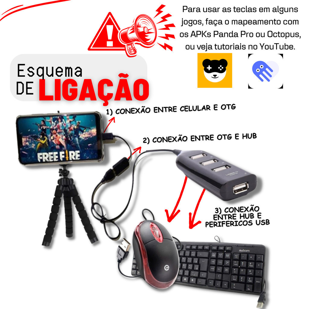 PREÇO PROMOCIONAL!! APROVEITEM ANTES QUE ACABE. DESCRIÇÃO: Eleve sua experiência de jogos e mais com o Kit Mobilador! Conecte até 4 dispositivos simultaneamente com o Hub USB, use o cabo adaptador OTG Tipo-C/Micro USB V8 para conectar diversos aparelhos e aproveite o Mini Tripé Flexível para celular, perfeito para uma jogabilidade confortável e estável. Transforme seu setup e jogue com mais praticidade! ESPECIFICAÇÕES HUB USB 2.0: • Compatível com USB 2.0 e 1.1 • Instalação fácil (Plug & Play) • 1 porta USB de saída, 4 portas de entrada • Proteção contra sobrecarga e energia excessiva • Não precisa de fonte externa • Velocidade de transferência: 480 Mbps • Cor: preto • Compatível com Windows 98 a 11 e Mac OS 9.0 ou superior ESPECIFICAÇÕES CABO OTG USB-C OU MICRO USB • Entrada: USB Tipo-C ou Micro USB V8 • Saída: USB (Fêmea) • Design compacto e fácil de usar • Suporta Plug & Play • Compatível com smartphones OTG • Comprimento do cabo: 10 cm ESPECIFICAÇÕES SUPORTE TRIPÉ • Pernas flexíveis com espuma protetora • Pernas giram 360° • Pés antiderrapantes para maior estabilidade • Cabeça ajustável com rosca e giro 360° • Suporta celular e tablet • Leve e portátil • Cor: preta ATENÇÃO: SELECIONE CORRETAMENTE NAS OPÇÕES DO ANÚNCIO SE O PRODUTO É UNIDADE OU KIT INFORMAÇÕES ADICIONAIS: • Envio Rápido: Pedidos enviados no mesmo dia! • Nota Fiscal: Compra segura e documentada. • Envio Seguro: Embalagem cuidadosa.