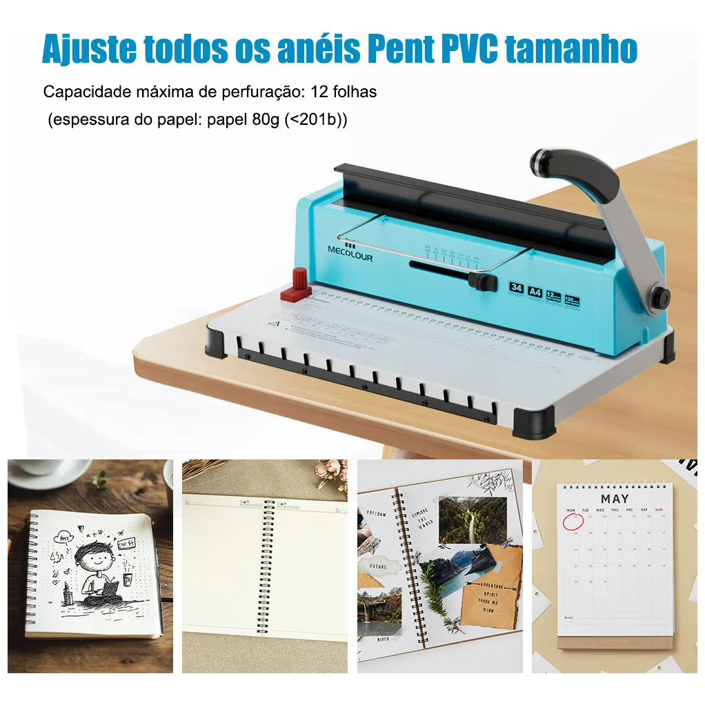 Kit Encadernadora 3x1 Wire-o 34 Furos Fura 12 Folhas + 100 Argolas Metálicas A4 MECOLOUR