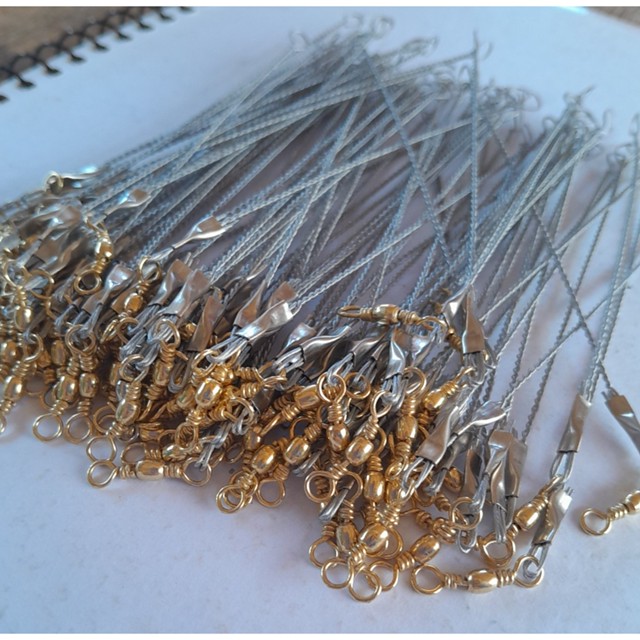 KIT ENCASTOAMENTO COMPOSTO COM CABO DE AÇO COM GIRADOR, IDEAL PARA GARANTIR QUE A LINHA NÃO SE ROMPA AO ENROSCAR EM TRONCOS OU PEDRAS. BENEFÍCIOS DO PRODUTO: - PRODUZIDO EM FIO DE AÇO,25 LBS,10 CM - POSSUI UM GIRADOR NA PONTA - LEVE,RESISTENTE E DE FÁCIL MANUSEIO