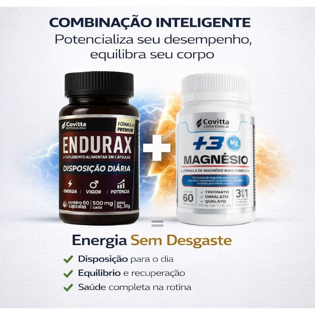 Kit Endurax + Magnésio 3 em 1 | Vigor Masculino |Energia e Foco |Auxilia Desempenho Físico | Covitta