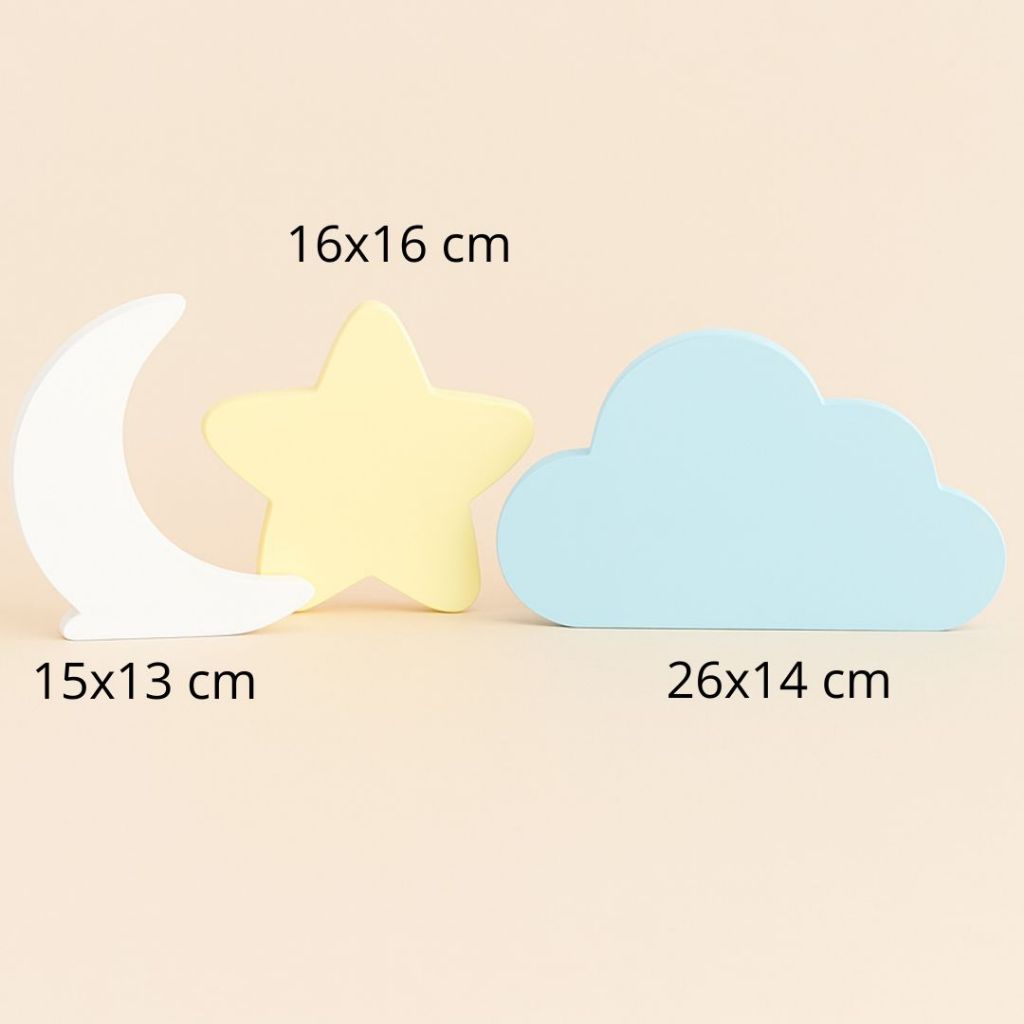 Kit Enfeite Decoração Quarto Infantil Bebe Menia Menino Lua Estrela Nuvem Fofo tem cupom de desconto?