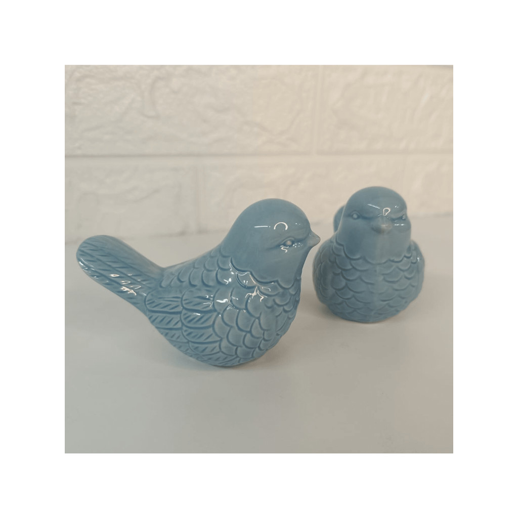 Kit Enfeites Passarinhos Cerâmica Azul Decoração Sala Banheiro 2 Peças