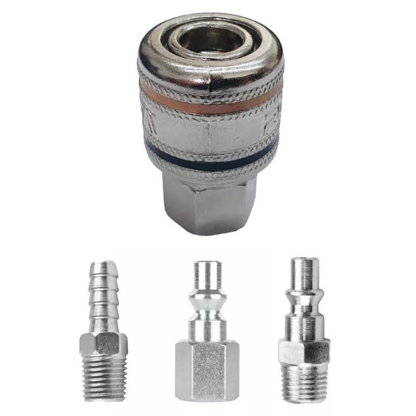 BUSCOU PNEUS - TUDO PARA PNEUMATICOS CONTEUDO DA EMBALAGEM: - 01 Engate Rápido Fêmea 1/4'' - 01 Pino de Engate Macho Rosca 1/4'' - 01 Pino de Engate Fêmea 1/4'' - 01 Espigão Escama 5/16" Rosca Macho 1/4'' Usos Recomendados: Ideal para redes de Ar, Gases ou Líquido e Também para Pistola de Pintura, Lubrificação, Bico Encher Pneu, Bico Passar Ar, Pulverizadores, Ferramentas Pneumáticas e Muito mais. Informações Adicionais: - Facilidade no encaixe e desencaixe do pino de engate - Vazão de 500l/min Engate Rápido - Pressão máxima do engate: 250lbs/23bar - Feito Em Aço, resistente a oxidação e corrosão - Alta Durabilidade *GARANTIA DE 3 MESES ESTOQUE PARA ENVIO IMEDIATO *PRODUTO NOVO C/ GARANTIA DE 3 MESES CONTRA DEFEITOS DE FABRICAÇÃO *Nossa equipe está sempre disposta a tirar suas dúvidas, basta nos chamar no campo das perguntas.