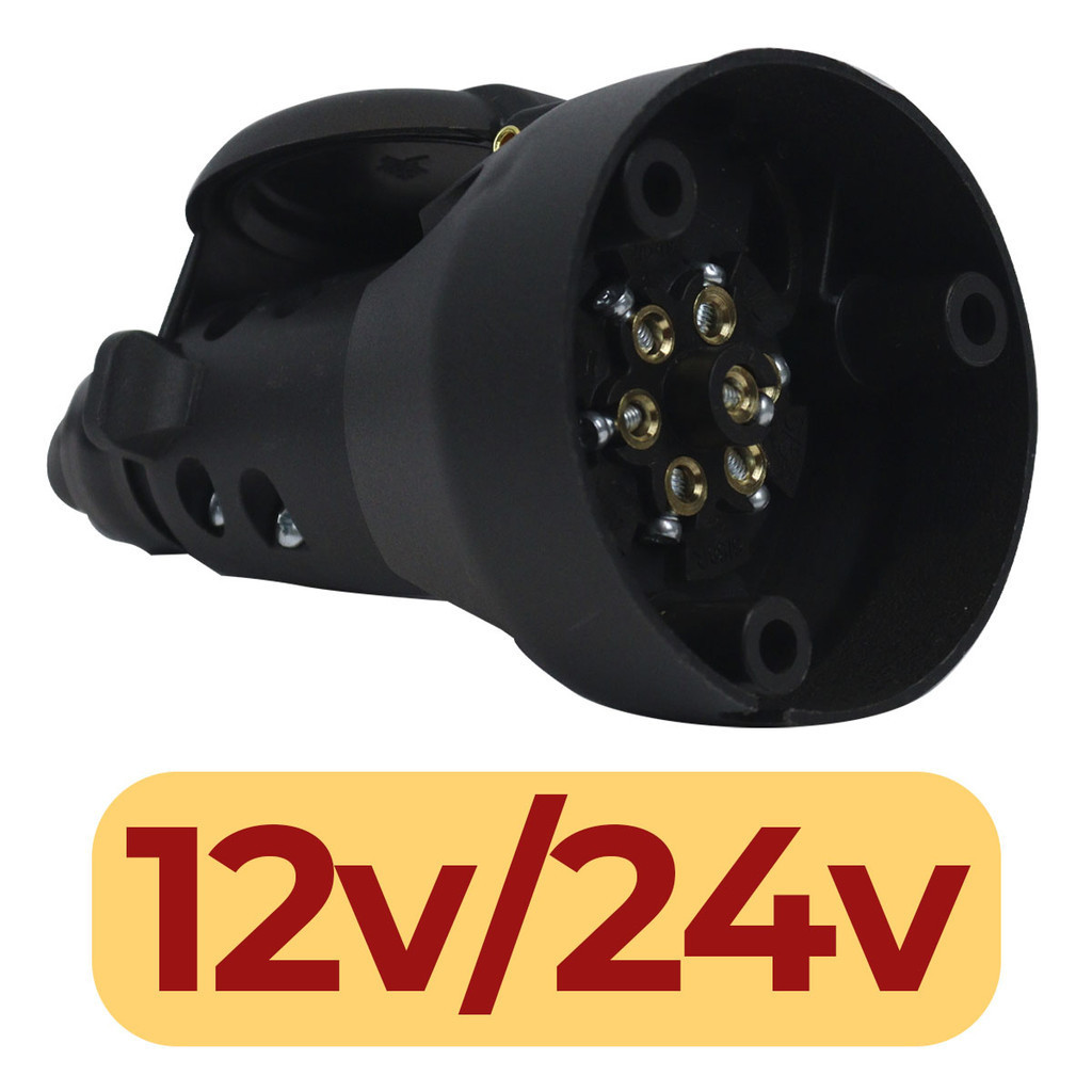 Kit Engate Reboque 7 Polos Bivolt Plastico Preto Macho Femea Carretinha Cavalo Facil Encaixe