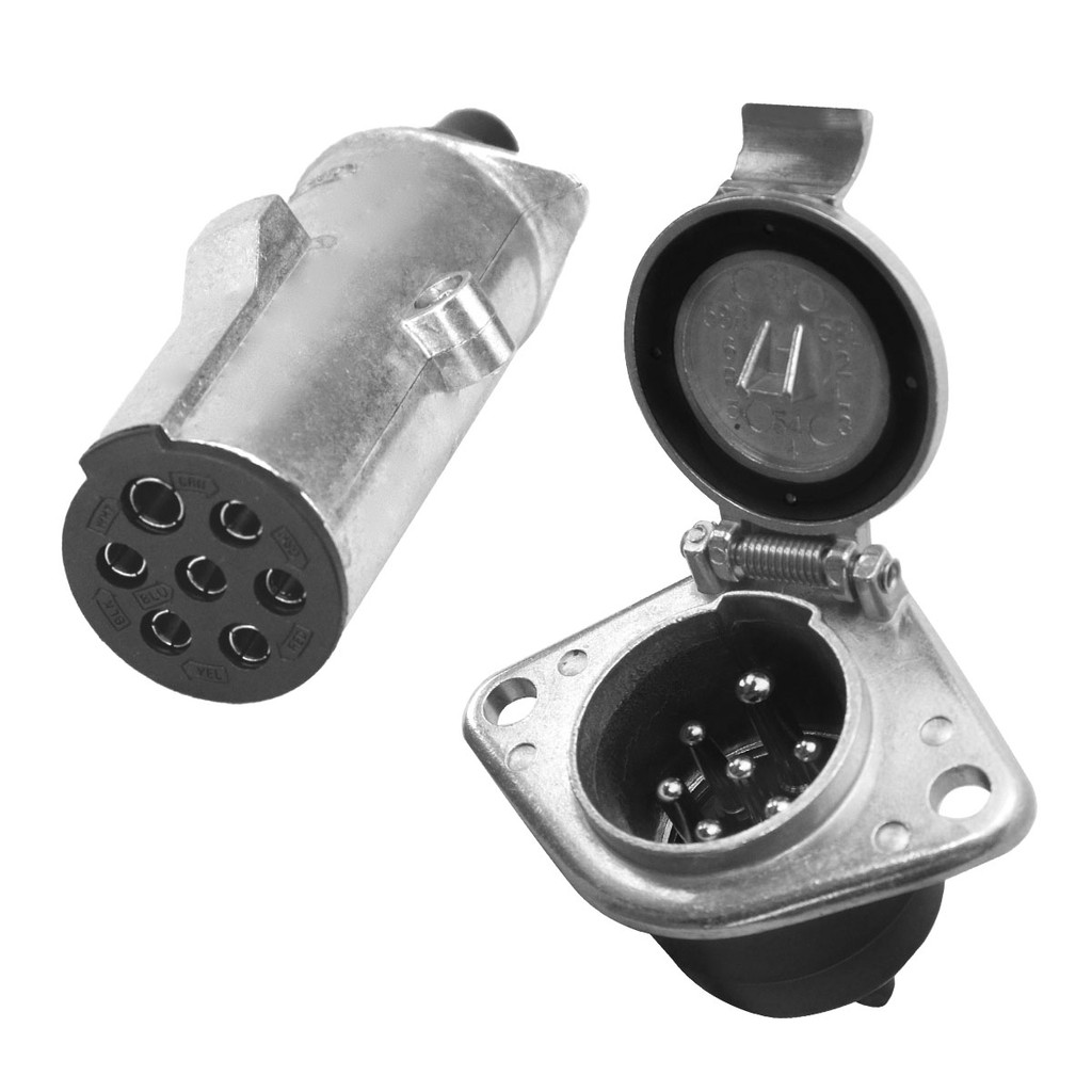 Kit Engate Reboque Tomada 7 Polos Alumínio Cromado Completa Cavalo Mecânico Semirreboques Carreta