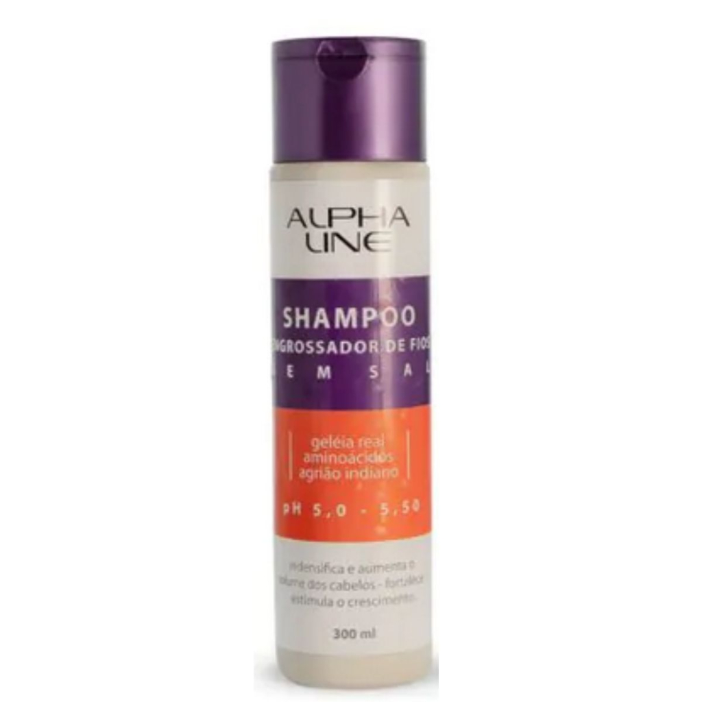 A LINHA ALPHA LINE ENGROSSADOR DOS FIOS foi desenvolvida para estruturar e fortalecer os fios fracos e ralos. Com a combinação de geleia real, aminoácidos e agrião indiano irá redensificar a fibra capilar, promovendo volume natural aos cabelos, fortalecendo e estimulando o crescimento dos fios. Além de melhorar a queda por quebra, seus cabelos ficarão mais resistentes, rejuvenescidos e saudáveis. Obs: O processo de redensificação cuticular consiste no preenchimento da porosidade do cabelo danificado, além de combater a opacidade (opaco) e o ressecamento pois atua diretamente na fibra capilar melhorando a força e a resistência do cabelo, tornado o fio “mais encorpado”. Redensifica e aumenta o volume do cabelo, fortalece e estimula o crescimento.