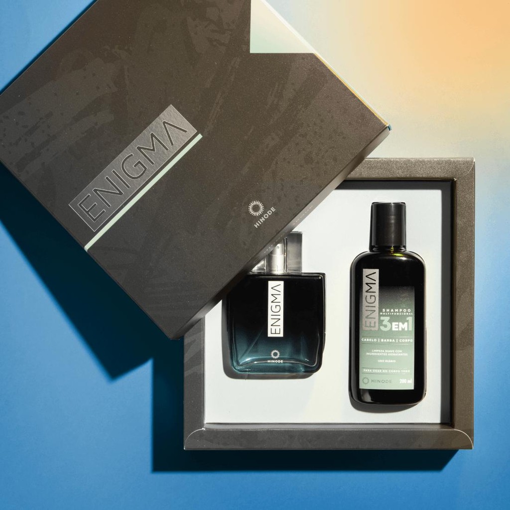 O Kit Enigma Hinode é a escolha perfeita para presentear o pai que carrega em si o mistério, a sofisticação e o poder de uma presença marcante. Criado para homens de personalidade forte e cativante, este kit combina fragrância envolvente e cuidado diário completo. Conteúdo do kit: - Enigma Deo Colônia 100ml – Uma fragrância amadeirada aromática que revela o equilíbrio entre frescor e intensidade. As notas cítricas e picantes se fundem a um coração herbal e frutado, finalizando com um fundo quente e misterioso. - Enigma Shampoo Cabelo, Barba e Corpo 200ml – Praticidade e elegância em um único produto. Limpa suavemente enquanto prolonga a experiência sensorial da fragrância Enigma em toda a rotina diária. Notas olfativas: - Saída: Mandarina, Pimenta Preta, Limão - Corpo: Lavanda, Gerânio, Maçã Verde - Fundo: Patchouli, Couro da Toscana, Notas Ambaradas Diferenciais: - Fragrância masculina sofisticada e marcante - Ideal para presentear no Dia dos Pais - Shampoo multifuncional: cabelo, barba e corpo - Produto original Hinode - Kit completo com excelente custo-benefício Surpreenda com um presente que traduz sedução, elegância e mistério. O Kit Enigma é mais que um presente, é um tributo ao homem que se destaca pela sua singularidade.