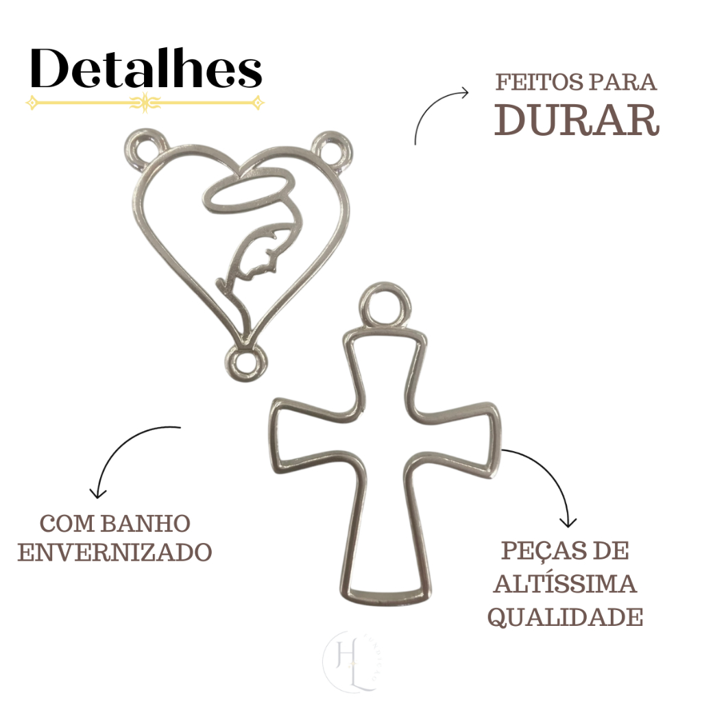 Kit Entremeio Coração Nossa Senhora + Pingente Cruz Vazada Níquel Brilhante Crucifixo Para Terço