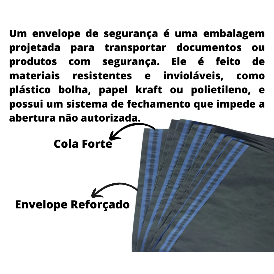 Envelope de segurança Ecologico - inviolável , impossível de ver oque tem dentro. Um envelope de segurança é uma embalagem projetada para transportar documentos ou produtos com segurança. Ele é feito de materiais resistentes e invioláveis, como plástico bolha, papel kraft ou polietileno, e possui um sistema de fechamento que impede a abertura não autorizada. Especificações Envelope Eco: • Cor: Preto • Largura x Comprimento: todas do anuncio disponivel • Aba: 3 cm Sobre o produto: • Original. • Lacrado de fábrica. • Com garantia. • Não violavel. • Isenta de contaminações. • Indicada para produtos no geral. • Sem possibilidades de ver o que tem dentro. Sobre a entrega: • SHOPEE EXPRESS. • Emitimos Nota Fiscal para CNPJ e CPF. Sobre nós: GG EMBALAGENS Nós somos uma empresa situada no mercado de embalagens a mais de 20 anos, somos uma das maiores empresas do Brasil, trabalhamos com Plástico Bolha, Fitas Adesivas, Durex, Fitas Crepes, Papel Kraft, Papelão Ondulado e Filme Stretch entre outros produtos no mesmo segmento, caso queira conhecer mais alguns de nossos produtos nos faça uma pergunta em qualquer anúncio solicitando o seu produto desejado! Em caso houver algum problema com o produto favor não abrir reclamação entre em contato conosco temos um suporte totalmente disposto a te atender.