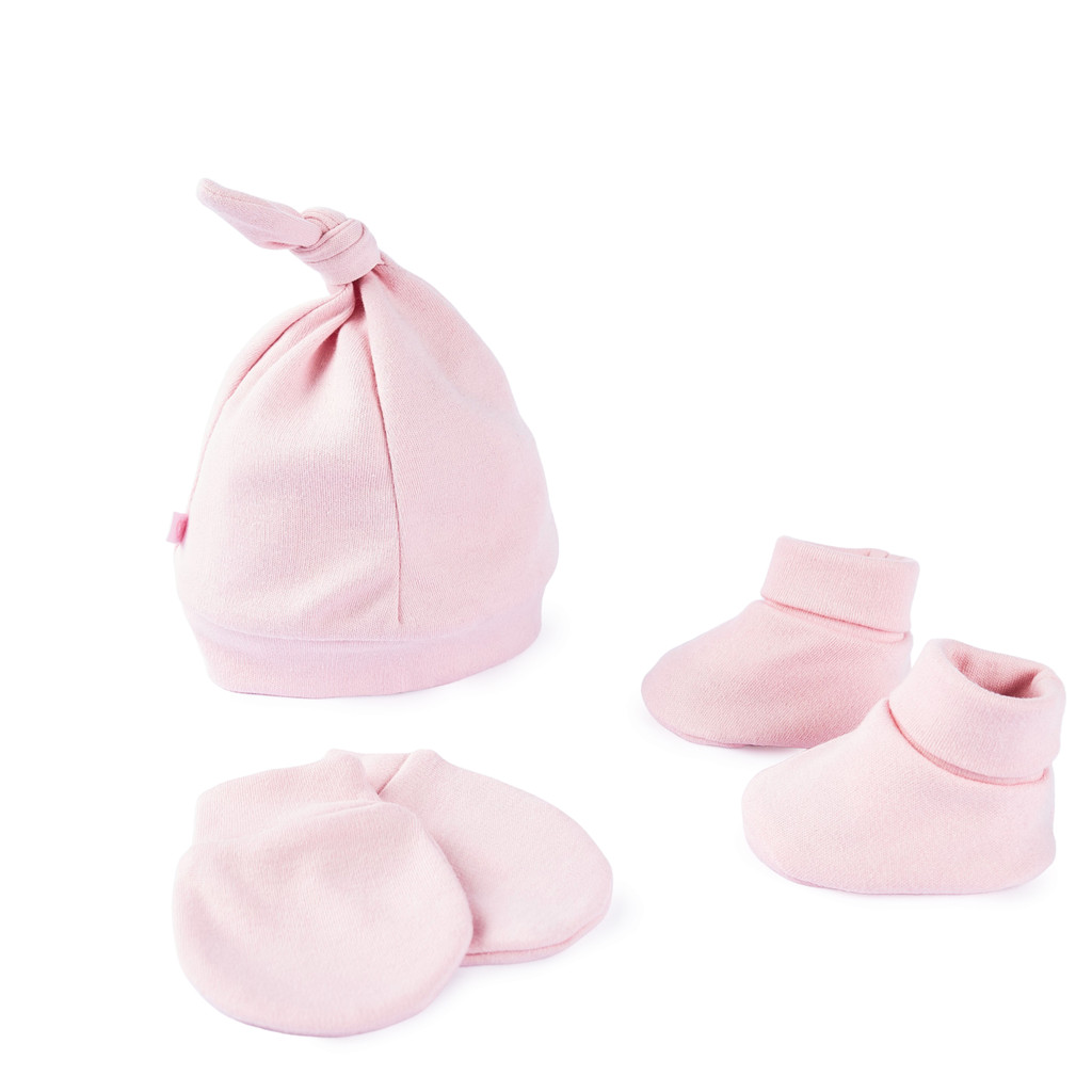 Kit Enxoval Bebê Fofinho Touca Luva e Sapatinho - 3 Peças