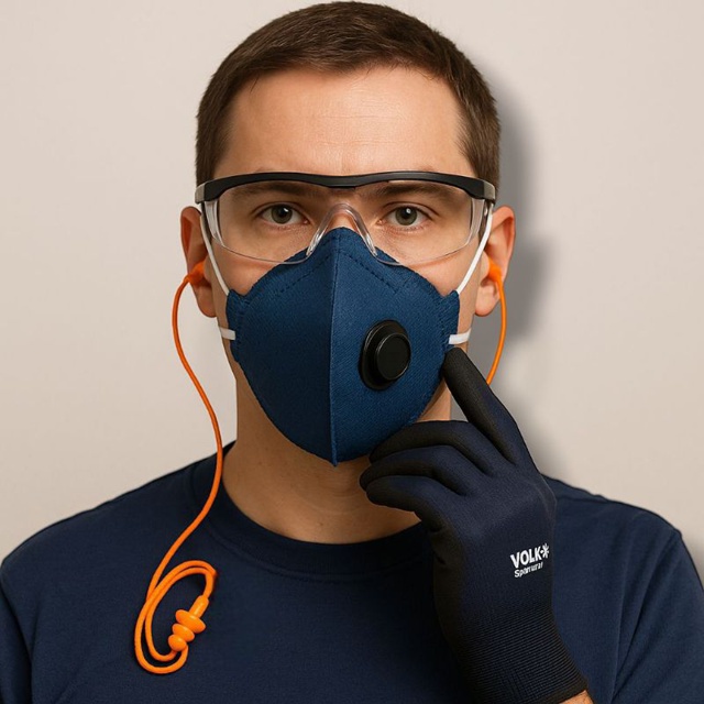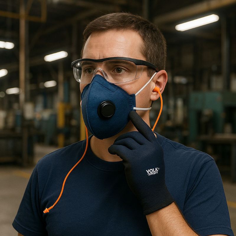 1. Máscara Respiratória com Válvula Descrição: Máscara facial tipo concha com válvula para exalação, confeccionada em material filtrante. Finalidade: Proteção das vias respiratórias contra poeiras e partículas sólidas. Aplicações: Ambientes com presença de poeiras, pó de madeira, partículas metálicas, entre outros. 2. Óculos de Proteção Incolor Descrição: Óculos de segurança com lente incolor em policarbonato e hastes ajustáveis. Finalidade: Proteção dos olhos contra impactos de partículas volantes e respingos. Aplicações: Atividades de corte, lixamento, manuseio de produtos químicos, entre outros. 3. Protetores Auriculares com Cordão Descrição: Protetores auriculares tipo plug, em silicone, com três flanges e cordão para apoio no pescoço. Finalidade: Redução da exposição a níveis elevados de ruído. Aplicações: Ambientes industriais, construção civil, operação de máquinas ruidosas. 4. Luvas de Segurança - Nylon com Revestimento em PU (Poliuretano) Descrição: Luvas com dorso ventilado e palma com revestimento em poliuretano, marca Volk. Finalidade: Proteção das mãos contra abrasões, cortes leves e sujeiras. Aplicações: Manuseio de peças secas, montagem leve, eletrônica, manutenção.