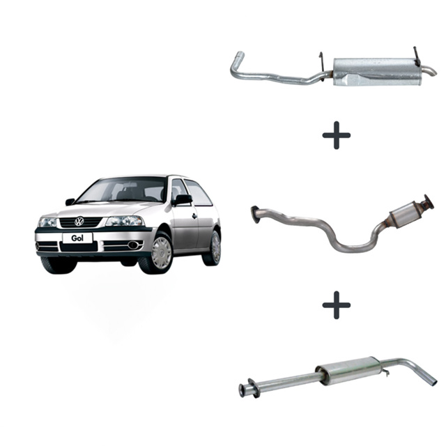 Kit Escapamento Silencioso Traseiro + Intermediario + Catalisador Gol 1.0 8V G3 G4 2001 á 2009