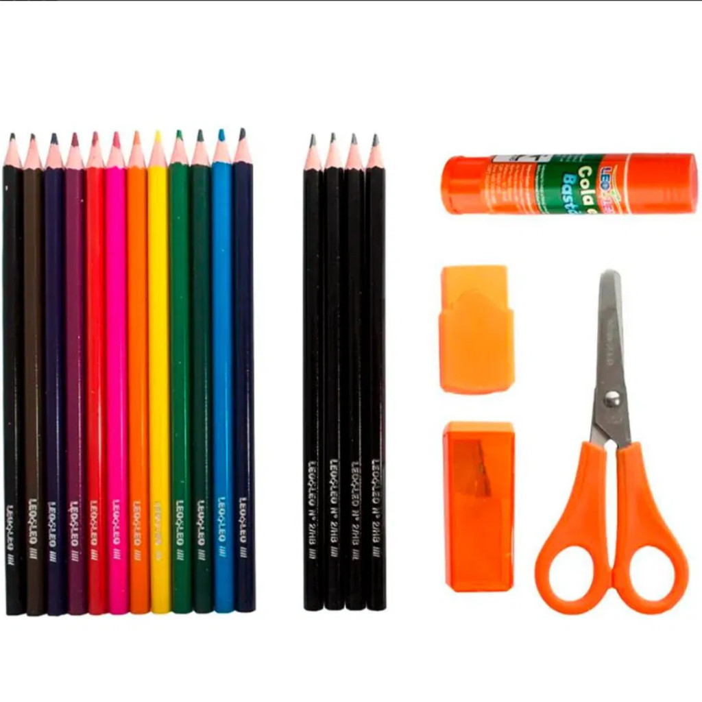 Marca: Leo&Leo; Referência: 4203; Código: 472599; Características do Produto: Kit escolar com 20 Peças Leo&Leo; Embalagem: Blister com 20 Peças Escolares Leo&Leo;