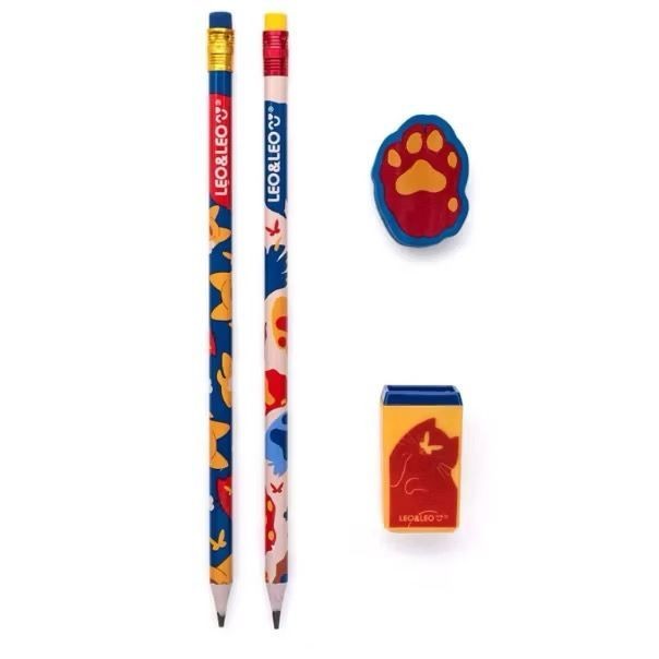 Kit Escolar 4 Peças Lapis Apontador Borracha Pets Donuts Astronauta Picolé Game Dino Leo&Leo