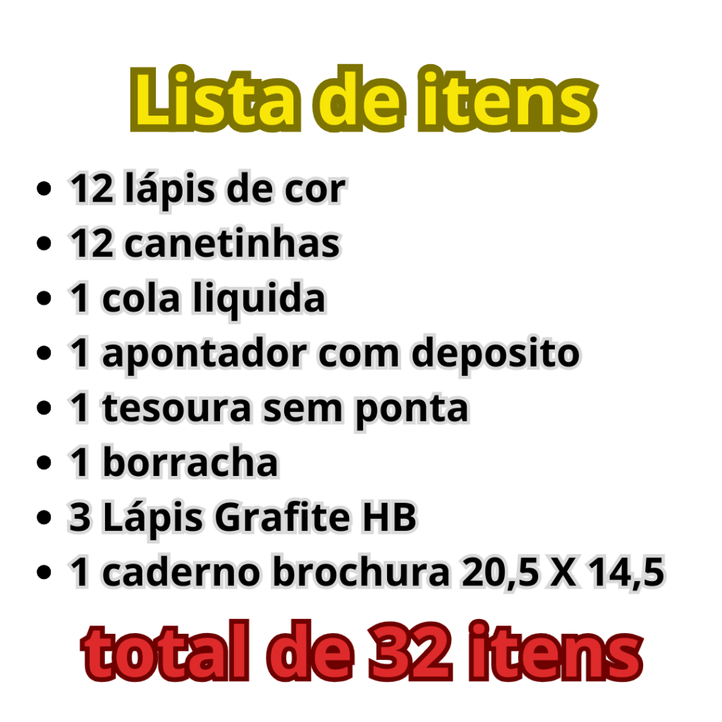 Kit Escolar Completo Infantil | 32 Itens | 1º e 2º Ano