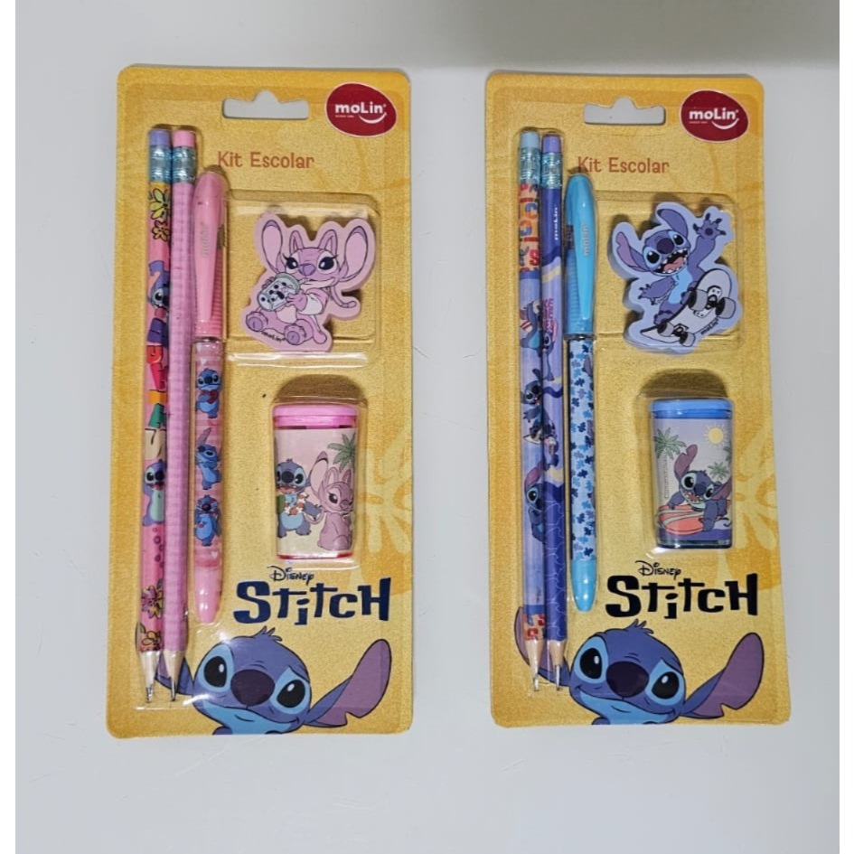 Kit Escolar Infantil Stitch Caneta Lápis 5 Peças Molin Volta as Aulas Molin