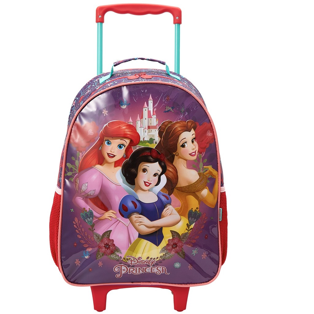 Kit Escolar Mochila Com Lancheira E Estojo Princesas Disney Que tal embarcar em uma viagem cheia de cores e muita animação com as Princesas Disney? Produzida em poliéster resistente, frente em PVC + glitter aplicado e zíper com puxadores de metal personalizado. A mochila conta com um bolso principal amplo, dois bolsos laterais de redinha, alça de mão em poliéster com nylon reforçado, hastes com trava e rodinhas em gel decoradas com glitter. A lancheira possui um bolso principal espaçoso, ideal para lanches e snacks. O forro térmico em PEVA mantém os alimentos fresquinhos por mais tempo, sendo perfeita para o dia a dia na escola ou passeios. Ela conta com frente estampada em PVC + glitter aplicado, fechamento em zíper com puxadores personalizados, alça de mão em poliéster com nylon reforçado e alças de costas ajustáveis. Além disso, possui alças para encaixe nas hastes das mochilas de rodinhas, garantindo maior facilidade no transporte. O estojo conta com frente em PVC + glitter aplicado, combinando funcionalidade e estilo. Ele possui um único compartimento espaçoso, zíper com puxador personalizado, além de ser perfeito para armazenar lápis, canetas e outros itens essenciais. As cores de sua composição combinam perfeitamente com as aventuras de Ariel, Branca de Neve e Bela. Permita que este conjunto carregue os momentos encantados de seus pequenos. Estilo, conforto, praticidade e segurança é com o kit escolar das Princesas! CONTÉM: 01 Estojo Simples 01 Lancheira Térmica 01 Mochila com Rodinhas. Capacidade da Mochila: 16L Composição: PVC vincado, Poliéster 420D, Metal e Rodinhas em gel. DIMENSÕES: Lancheira: 19cm (larg) x 21cm (alt) x 10cm (comp) Estojo: 5cm (largura) x 21,5cm (comprimento) x 9cm (altura) Mochila (haste fechada): 40cm (altura) x 15cm (largura) x 30cm (comprimento) Mochila (haste aberta): 83cm (altura). PRODUTO ORIGINAL! REF: 13140 - 13144 - 13145 Aviso: As cores podem variar em relação às apresentadas nas fotos. Imagens meramente ilustrativas.