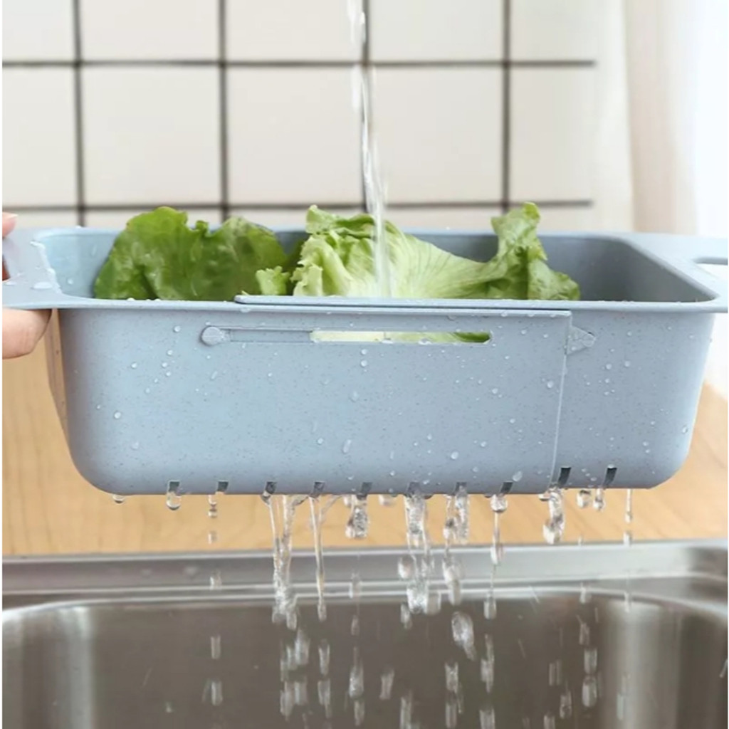 kit Escorredor Cesto Retrátil Rack Ajustável Para Pia Frutas Legumes Alimentos Pratos