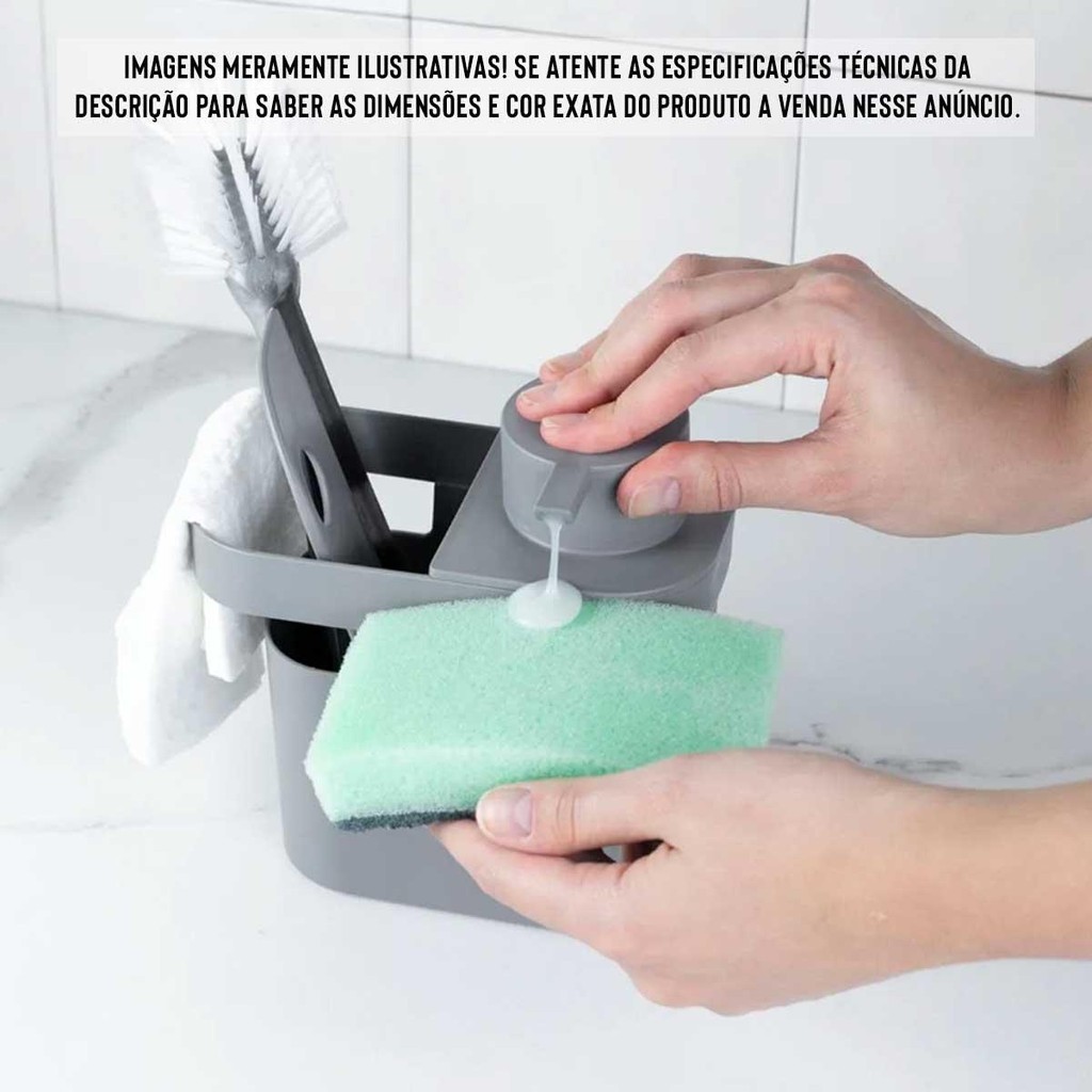 Kit Escorredor de Louça Dispenser Rodinho de Pia Lixeira - OU