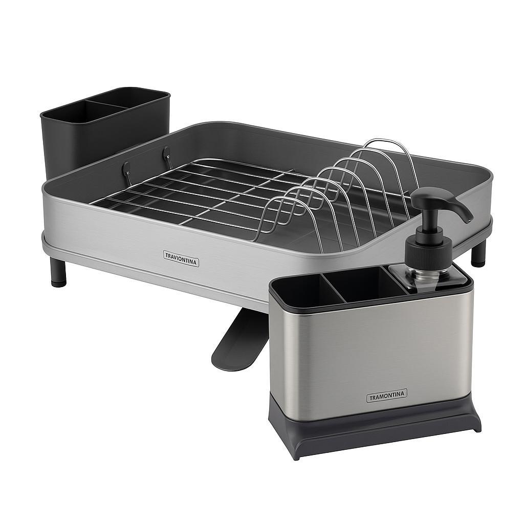 Kit Escorredor de Louça Tramontina em Aço Com Secador Porta Talheres + Organizador de Pia Plurale