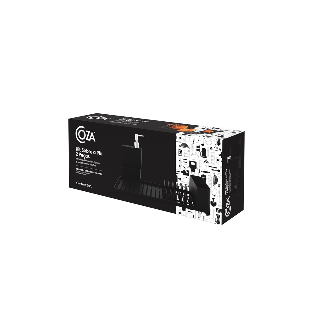 Kit Escorredor de Louças + Dispenser Coza Single 2 Peças Preto