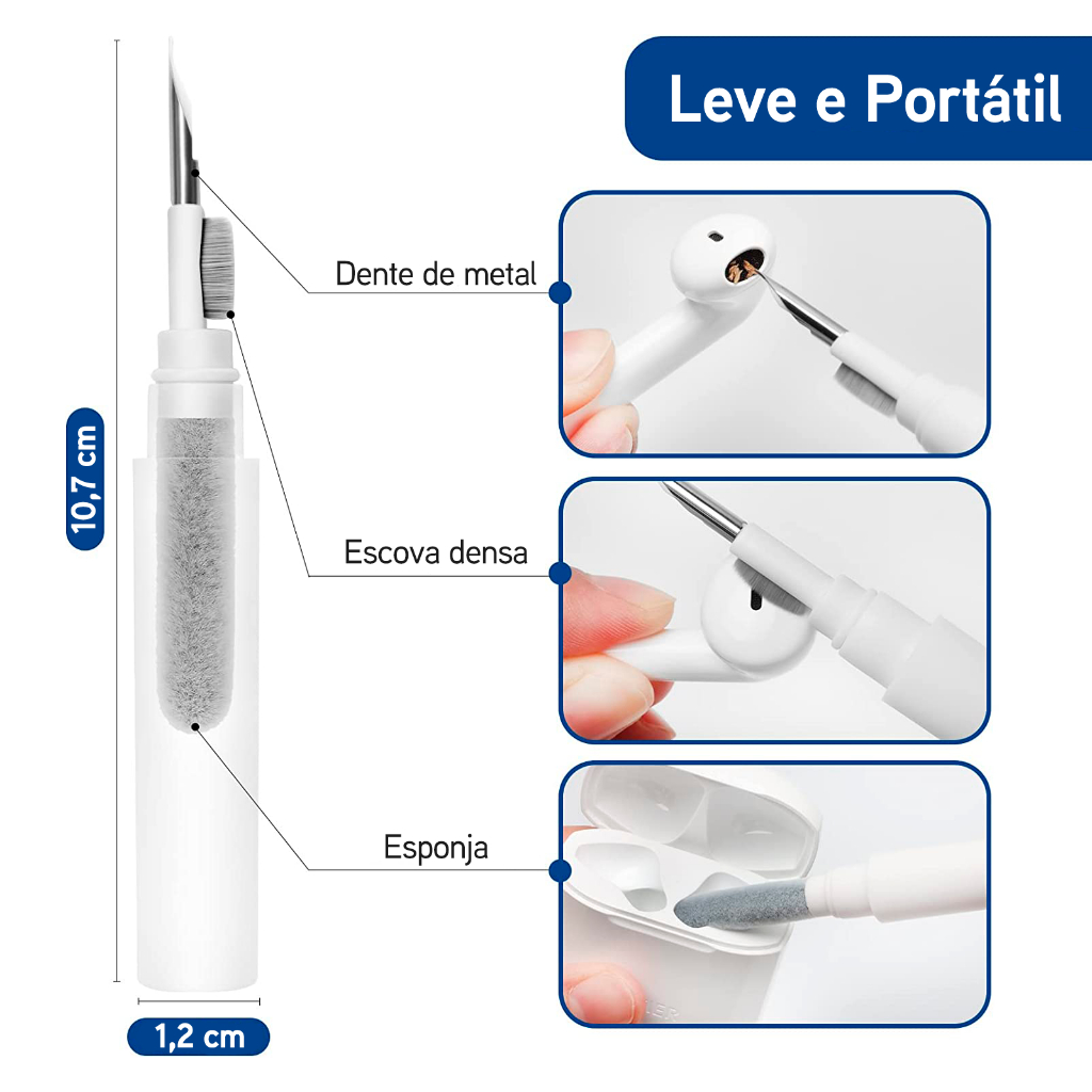 Kit Limpeza 5 em 1 - Limpador de Fones de Ouvido, Teclado e Computador - Dapon MCP01 Mantenha seus eletrônicos sempre limpos e bem cuidados com o Kit Limpeza 5 em 1 Dapon MCP01. Este kit multifuncional é perfeito para quem busca praticidade e eficiência na limpeza de seus dispositivos. Kit Multifuncional Desmontável Com um design desmontável, o kit contém 5 ferramentas que atendem a todas as suas necessidades de limpeza. Ideal para teclados, fones de ouvido, celulares e outros acessórios, você poderá realizar uma limpeza completa em apenas um único passo. Seu Teclado 100% Limpo As cerdas de nylon macias e firmes são perfeitas para alcançar os vãos e peças do seu teclado. Remova as teclas com segurança e limpe cada cantinho, garantindo que seu teclado fique 100% limpo e livre de sujeira. Caneta de Limpeza para Fones de Ouvido A caneta de limpeza é uma adição valiosa ao kit. Ela possui uma esponja de flocagem que remove impurezas dos estojos de carregamento dos fones de ouvido. Além disso, uma escova de alta precisão é ideal para limpar as saídas de som, enquanto a ponta de metal ajuda a remover sujeiras mais difíceis. Vantagens do Kit Design compacto e portátil para fácil armazenamento. Ferramentas versáteis que atendem diversas necessidades de limpeza. Materiais de alta qualidade que garantem durabilidade.