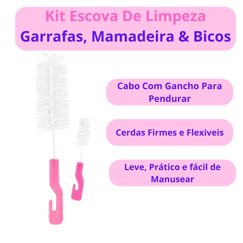 kit Escova Lava Garrafa Mamadeira Copo Térmico Limpeza Profunda