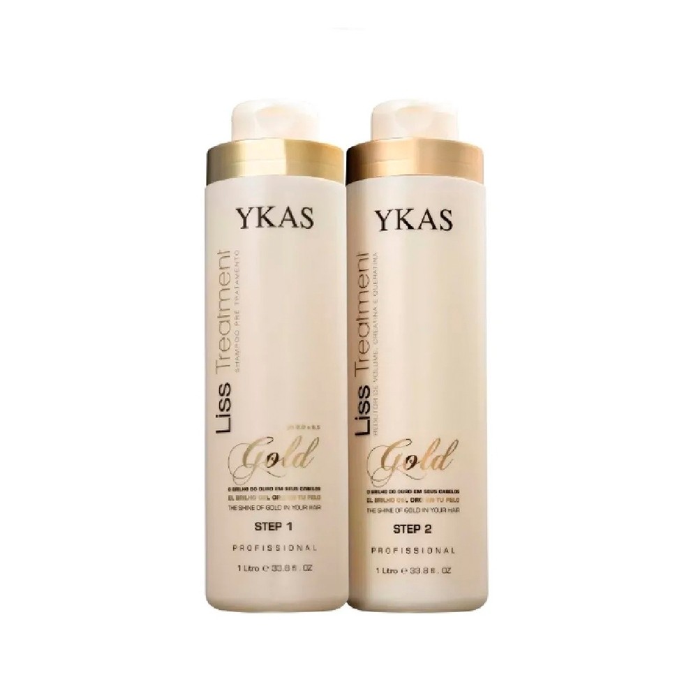 Kit Escova Progressiva Ouro Ykas Kit Escova Progressiva Ouro Ykas é um tratamento reconstrutor que realinha a cutícula capilar proporcionando redução de volume e brilho intenso, similar ao brilho do ouro. &Amp;Eacute; ideal para hidratar e conceder brilho a todos os tipos de cabelo. Kit Escova Progressiva Ouro Ykaspossui em sua fórmula uma combinação de Queratina Hidrolizada e D-pantenol que transformam cabelos volumosos e com frizz em cabelos com brilho, sedosos e sem volume. Além disso, também reduzem o volume, alinham os fios, selam as cutículas, hidratam, ajudam no fortalecimento da fibra, protegem contra danos externos e concedem mais maciez e caimento natural. &Amp;Eacute; compatível com qualquer química e pode ser utilizado em todos os tipos de cabelos que possuem coloração, descoloração, relaxamento e alisamento.&Amp;nbsp;