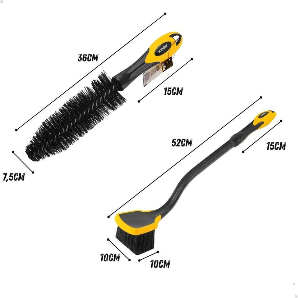 Kit 2 Escovas de Limpeza Automotiva Vonder – Eficiência e Praticidade para seu Carro! Transforme a limpeza do seu veículo com o Kit de 2 Escovas Vonder, desenvolvido para garantir uma higienização completa, eficiente e sem esforço. Ideal para rodas, caixas de rodas e partes difíceis de alcançar. Por que escolher esse kit? Qualidade Premium: Cerdas resistentes e duráveis que removem sujeiras pesadas sem danificar a pintura. Ergonomia e Conforto: Cabo anatômico que proporciona firmeza e segurança durante o uso. Versatilidade Máxima: Ideal para rodas, pneus, caixas de rodas e até grades e para-choques. Eficiência Garantida: Design projetado para alcançar até os cantos mais difíceis. O que inclui o kit? 1 Escova longa para caixas de rodas: Perfeita para áreas maiores e de difícil acesso. 1 Escova para furos de rodas: Ideal para limpar detalhes e partes internas das rodas. Perguntas Frequentes (FAQ) Esse kit é adequado para todos os tipos de rodas? Sim, é indicado para rodas de liga leve, cromadas, pintadas e até mesmo as mais delicadas. As cerdas danificam a pintura do carro? Não! As cerdas são projetadas para serem firmes na sujeira e suaves na superfície. Posso usar essas escovas para outros tipos de limpeza? Sim, além de automóveis, é excelente para motocicletas, bicicletas e até móveis externos. Como faço para limpar as escovas após o uso? Basta lavá-las com água e sabão neutro, deixando secar naturalmente. Garanta agora mesmo o Kit 2 Escovas Vonder e tenha um carro sempre limpo e impecável! Detalhes Técnicos: Material: Cerdas em Nylon com cabo plástico; Dimensões: C x L x A (36 cm x 7,5 cm x 5,8 cm) Media; Dimensões: C x L x A (52 cm x 10 cm x 10 cm) Grande; Garantia: 7 dias Peso: 500g Código de Barras: 7893946531997, 7893946532031