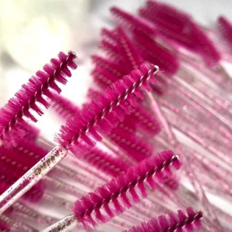 Kit com 50 pincéis descartáveis para cílios e sobrancelhas, ideal para modelar, pentear e manter a higiene na aplicação de alongamentos e maquiagens.