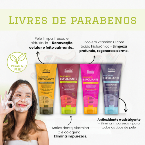 Kit Esfoliante Corporal Potinho e Esfoliante Facial Face Beautiful Esfoliante Corporal Lovely 280g Descubra o segredo para uma pele irresistivelmente suave e renovada com o Esfoliante Corporal Lovely. Essa fórmula exclusiva proporciona uma experiência de autocuidado, combinando maciez e hidratação para uma sensação de bem-estar única. Beneficios: - Esfoliação Profunda: Elimine células mortas e impurezas, prevenindo o surgimento de pelos encravados e promovendo a renovação celular. - Hidratação Intensa: A combinação de Ácido Hialurônico e Manteiga de Karité deixa a pele nutrida e macia ao toque. - Deixa a pele macia, refrescante e saudável após o processo de esfoliação. Com 3 Modelos que você não pode perder: - A Rosa Mosqueta auxilia na regeneração da pele e atenua rugas e linhas de expressão. Combate o envelhecimento precoce e contribui com a hidratação da pele. - O Colágeno é a proteína responsável por garantir firmeza, sustentação e resistência a pele. Atua na definição do contorno facial e outras linhas de expressão. - A Camomila melhora as propriedades anti-inflamatórias e antioxidantes, que podem acalmar a pele, reduzindo vermelhidão e manchas. Modo de Uso: - Aplique no corpo e/ou rosto uma pequena quantidade sobre a pele limpa e úmida, massageie pelo tempo desejado. Retire o produto com água em abundância. Utilizar somente 1 ou 2 vezes por semana. Sabonete Esfoliante Facial 100ml O Sabonete Facial Esfoliante da Face Beautiful foi Desenvolvido para ajudar no Tratamento facial na renovação da Pele, eliminando as células mortas e impurezas liberando os poros, e melhorando a respiração cutânia. - O Extrato de Pitaya : Rico em Vitamina C com ácido Hialurônico - O Extrato de Morango: Antioxidante, Vitamina c e Colágeno - O Extrato de Maracujá: Revolução Celular e Efeito Calmante Caracterisitcas : - Para todos os Tipos de Pele - Limpa; Esfolia; Hidrata; Refresca e Suaviza a Pele - Sem Parabenos - Elimina Impurezas da Pele Modo de Uso: - Agite antes de Usar; - Aplique uma camada no Rosto; - Realizes movimentos circulares; - Enxágue com Água Corrente Contém: (Escolha a variação no momento da compra) 01 Esfoliante Corporal Potinho 280g 01 Esfoliante Facial 100ml