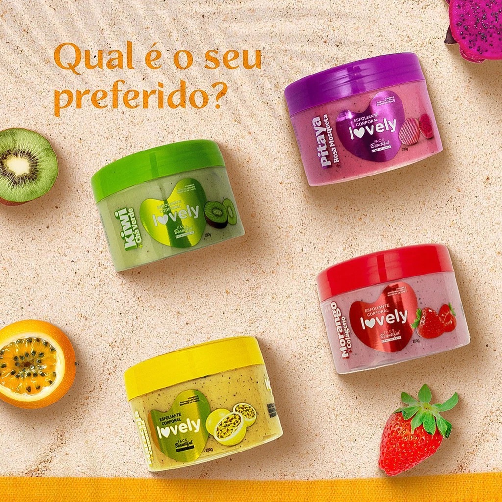 Kit Esfoliantes Corporais Com Cheirinho de Fruta Lovely Face Beautiful 280g