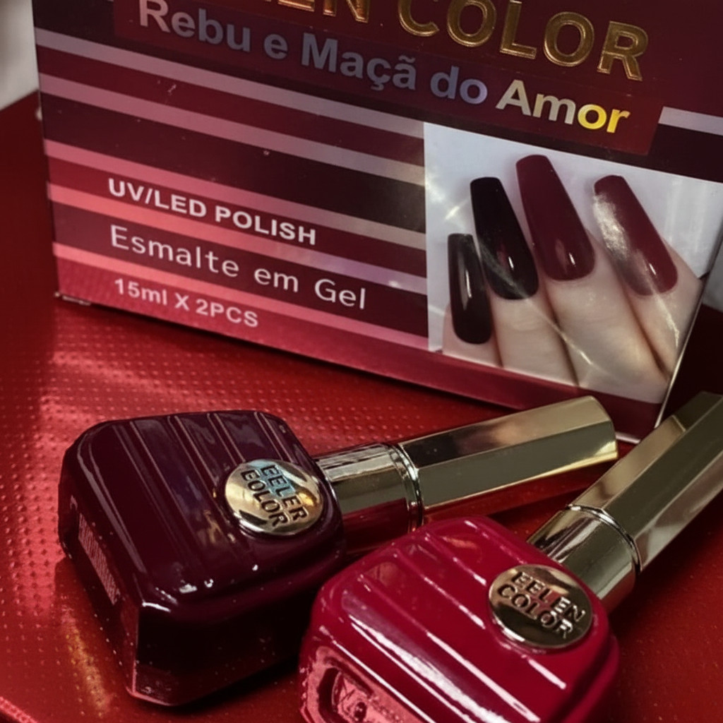 Kit Esmalte em Gel Rebu e Maçã do Amor Helen Color com 2 Cores UV/LED 15ml Cada