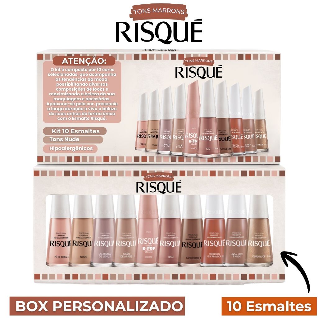 Kit Esmalte Risque Atacado Manicure 10 Cores Tons Nude + Box Personalizado