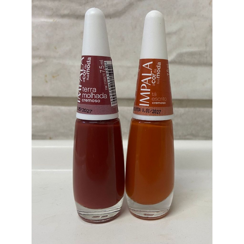 Kit com 4 esmaltes Tons Terrosos Impala, contem: 1 esm Cor da Sua Moda - Coisa Linda (cremoso) 1esm Cor da Sua Moda - Terra Molhada (cremoso) 1 esm Cor da Sua Moda - Cafune (cremoso) 1 esm Cor da Sua Moda Tá Escrito (cremoso)