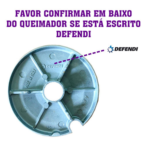 *********************************ATENÇÃO********************************* VERIFICAR SE EM BAIXO DO QUEIMADOR ESTÁ ESCRITO DEFENDI, CASO NÃO TIVER, FAVOR NOS ENVIAR UMA PERGUNTA. *********************************ATENÇÃO********************************* O kit é composto por: - 2 ESPALHADOR GRANDE - 9,3 CM - 2 QUEIMADOR GRANDE. - 3 ESPALHADORES MÉDIO - 6,8 CM - 3 QUEIMADORES MÉDIO. Com essas peças de reposição, seu fogão terá um desempenho ainda melhor e você poderá cozinhar com mais praticidade e eficiência. Com a nossa plataforma de compra online, você pode adquirir o seu kit com praticidade e segurança. Não perca tempo e renove o seu fogão agora mesmo!