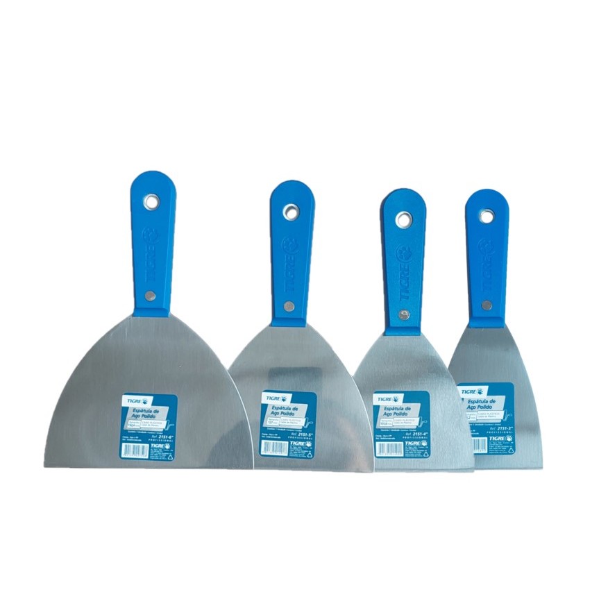 KIT ESPATULAS DE AÇO POLIDO TIGRE , PARA MASSA CORRIDA ,RASPAGENS E OUTROS