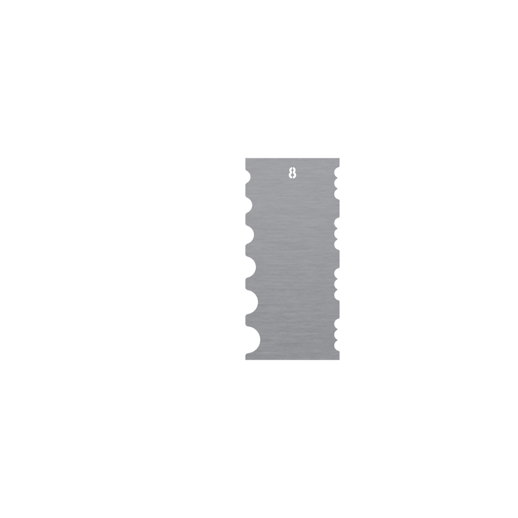 Espátula Decorativa de Bolo em Aço Inox para Confeitaria As Espátulas Decorativas para Bolo foram desenvolvidas para facilitar os trabalhos com as decorações de bolos, uma maneira rápida de fazer um acabamento lindo, decorativo e profissional. São feitas em Aço Inox escovado e contam com uma grande variedade de desenhos, solte a imaginação e faça lindos trabalhos com as Espátulas Decorativas para Bolo ou marcadores para bolos como também são conhecidos. Características: Altura ideal para bolos de até 15 cm. Espátulas duplas sendo 2 modelos na mesma espátula, totalizando 11 desenhos e 1 lado para alisar a cobertura do bolo. - Material: aço inox - Tamanho total: 15cm X 7cm (Comprimento X Largura) Quantidade Kit com 6 unidades