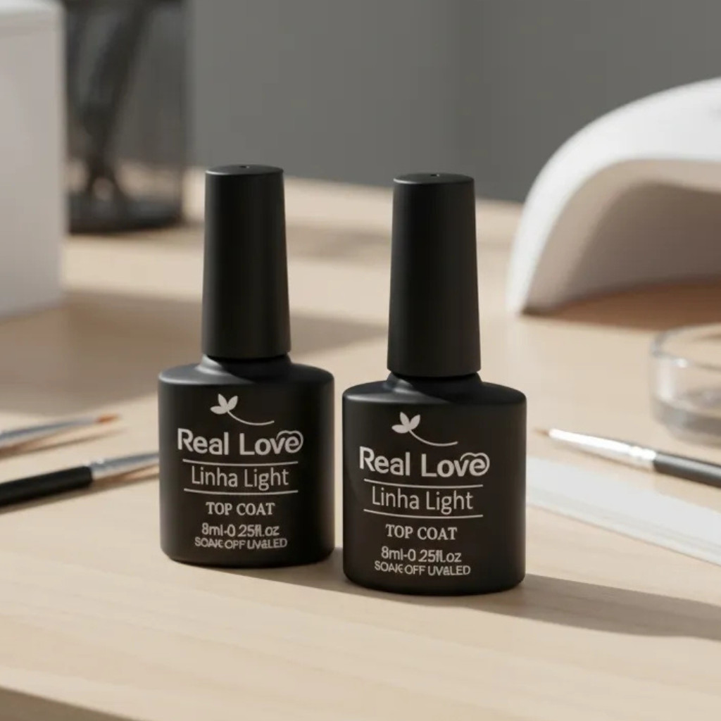 Kit Especial 2 Top Coat Para Unhas Linha Light 8ml - Real Love Top Coat é ideal para fazer a finalização de unhas postiças, unhas esculpidas em Porcelana ou Gel, pois evita o amarelamento desses materiais, além de promover o brilho intenso e potencializar a durabilidade dos esmaltes. Modo de Usar: Finalize sua unha com o top coat linha light para dar brilho. Uso ideal para unhas postiças, unhas com porcelana ou em gel. Contém: 2 - Top Coat Linha Light 8ml