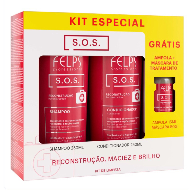 | Kit Especial SOS Recontrução Felps Professional 4 em 1 este produto | R$ 50,00 | 17% | 4.9/5 | 9 |