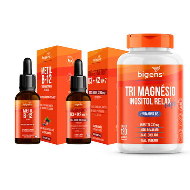 Kit Essencial Bigens Tri Magnésio + Bio Synergy + Metil B12 Vegan | Suplementos Bigens Original